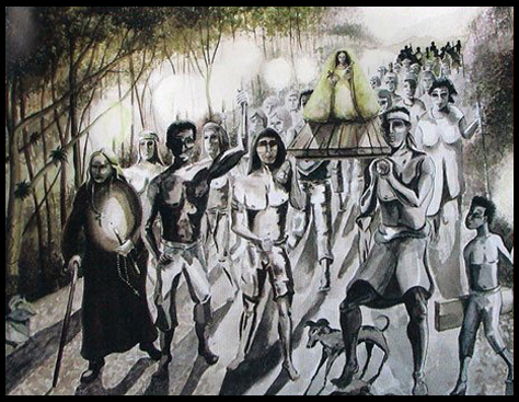 La tomaron de las aguas y la pusieron sobre su canoa, entonces detallaron la imagen: sus manos cargaban y mostraban a un bellísimo niño Jesús y una cruz. Sus vestiduras estaban secas, a pesar de la noche de tormenta y de que navegaba sobre una frágil tablilla.